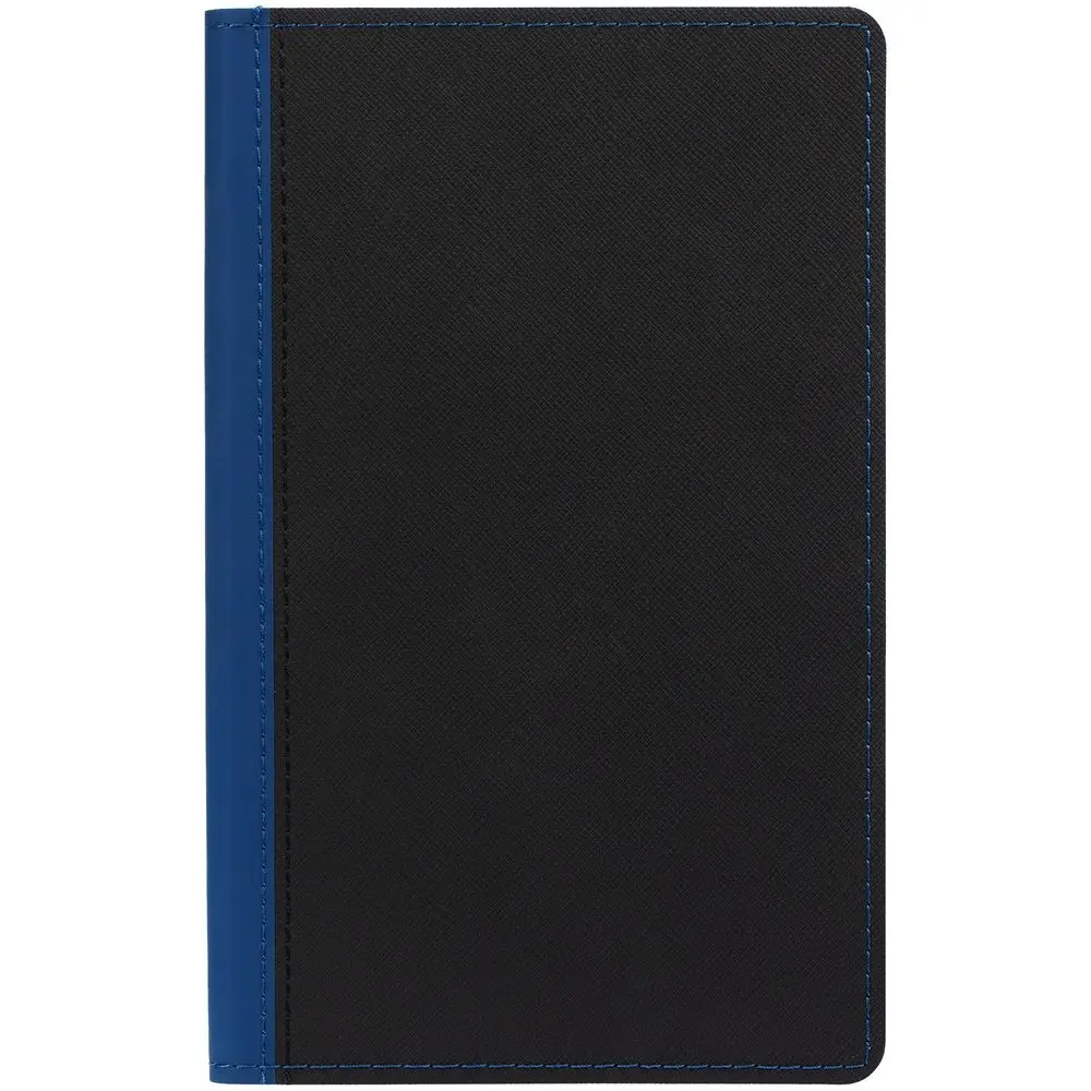 Ежедневник с гибкой обложкой выполнен из материала Nice Touch, черный АА и Soft Touch Ultra, синий НН, дополнен ляссе гсинего цвета.
