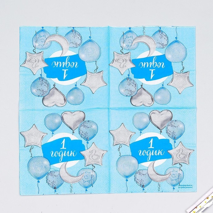 Салфетки бумажные «1 годик», малыш, 25х25 см, набор 20 шт.