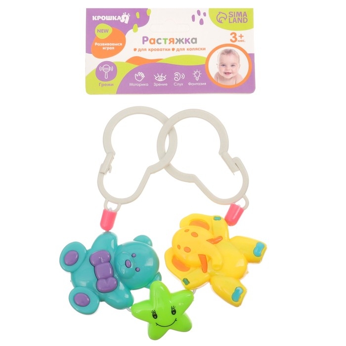 Растяжка на коляску/кроватку «Мишка, звезда, слоник», 3 игрушки, Крошка Я