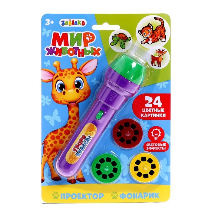 Проектор-фонарик «Мир животных» станет прекрасным началом для развития творческих способностей ребёнка.