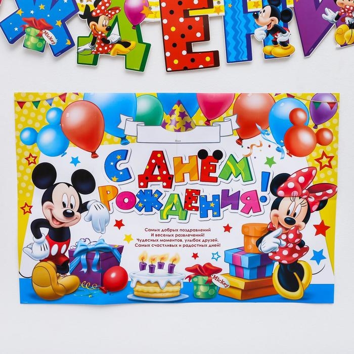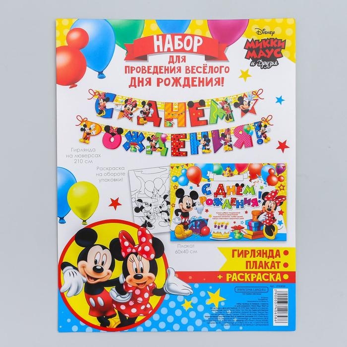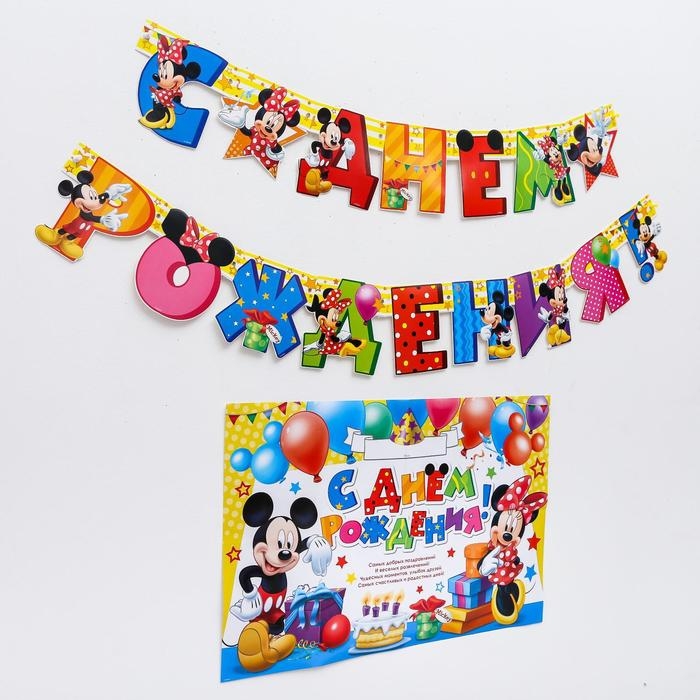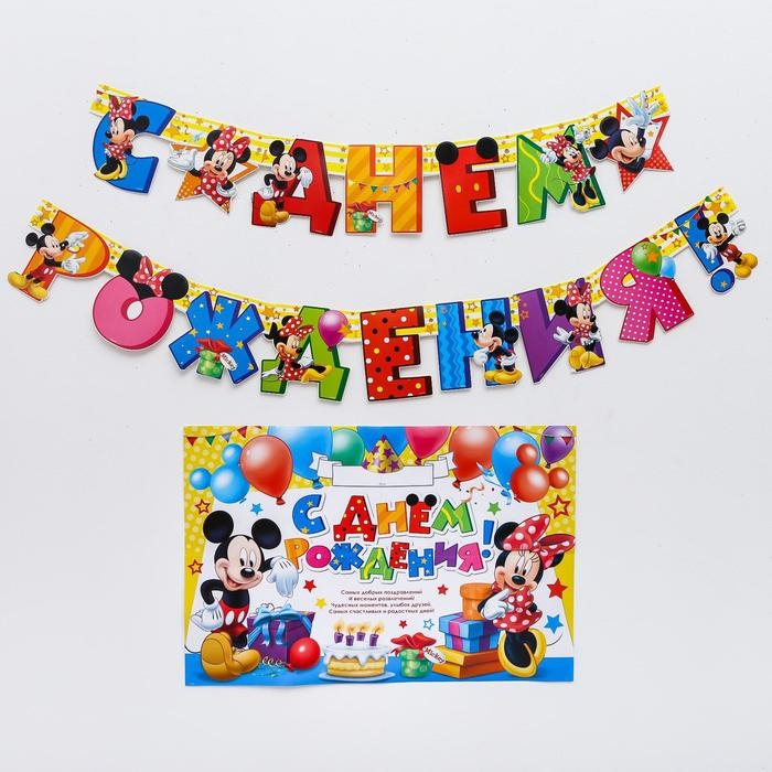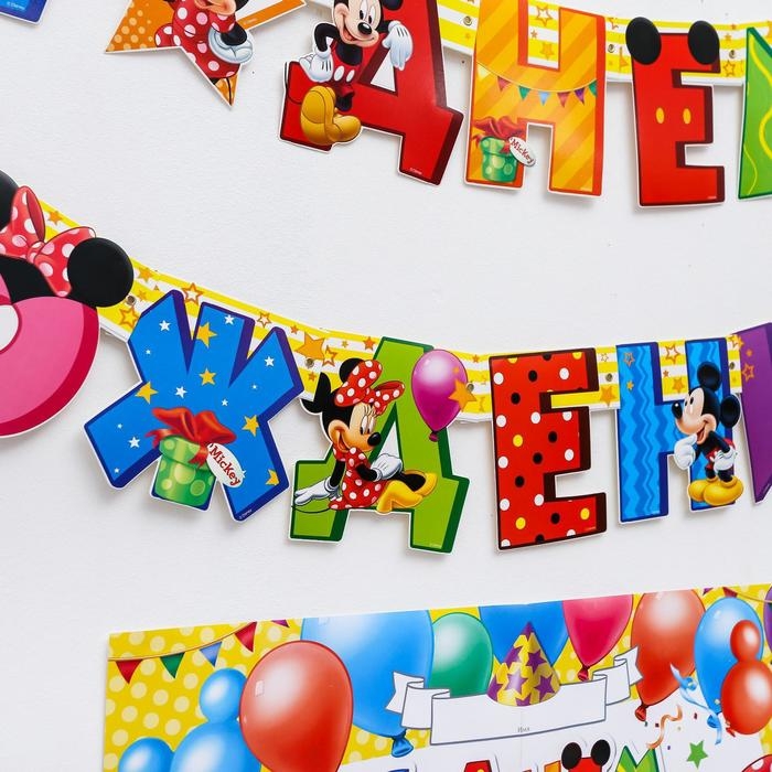 Гирлянда на люверсах с плакатом "С Днем Рождения", длина 210 см, Микки Маус