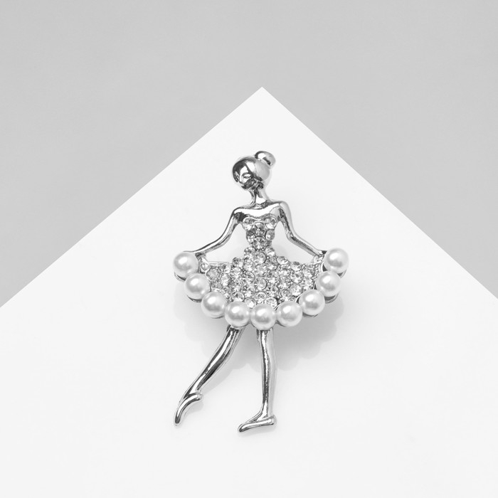 Брошь «Балеринка» , цвет белый в серебре