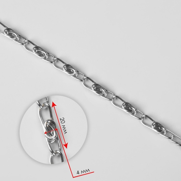 Цепочка для сумки, с карабинами, железная, 12,5 × 7,5 мм, 60 см, цвет серебряный
