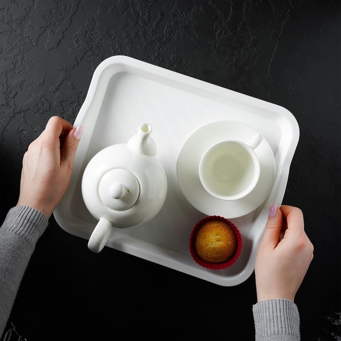 - Высокие бортики не позволяют посуде соскользнуть, а всё случайно пролитое или просыпанное останется на подносе;