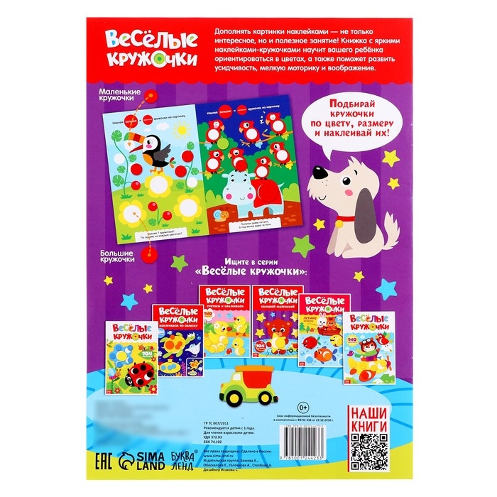 Развивающие наклейки-кружочки пригодятся при обучении малышей важным навыкам. Книга «Весёлые кружочки. Большой — маленький» направлена на тренировку цветовосприятия, запоминание названия цветов и понятий «большой — маленький».