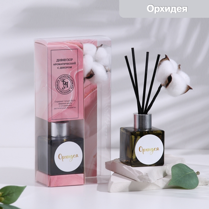 Диффузор ароматический с цветком хлопка "Нежный", 50 мл, орхидея, "Богатство Аромата"