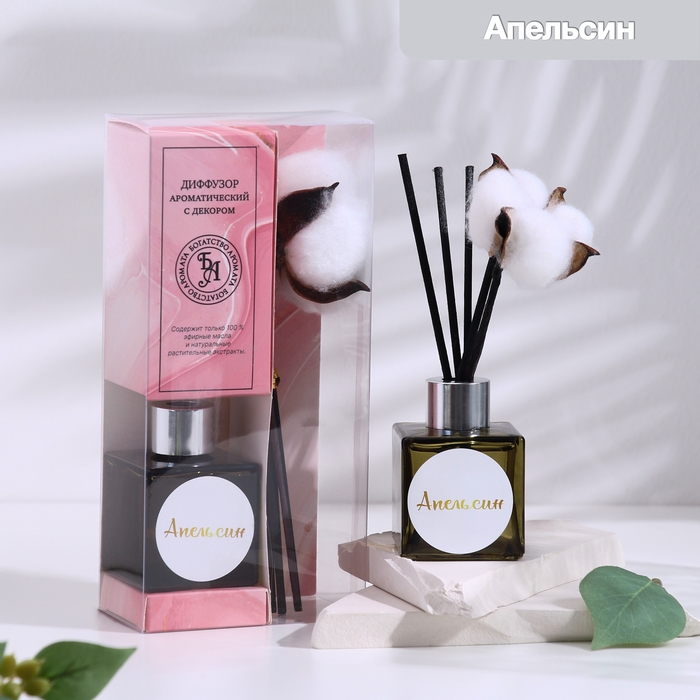 Диффузор ароматический с цветком хлопка "Нежный", 50 мл, апельсин, "Богатство Аромата"