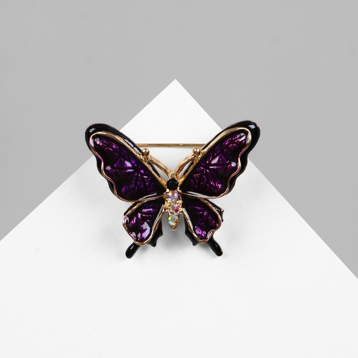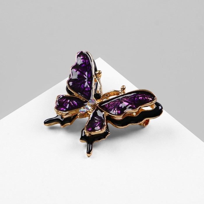 Брошь «Бабочка» дарк, цвет чёрно-фиолетовый в чернёном золоте