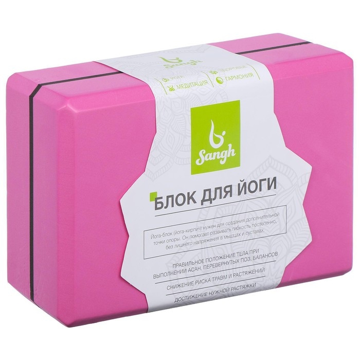 Блок для йоги Sangh, 23×15×8 см, цвет розовый