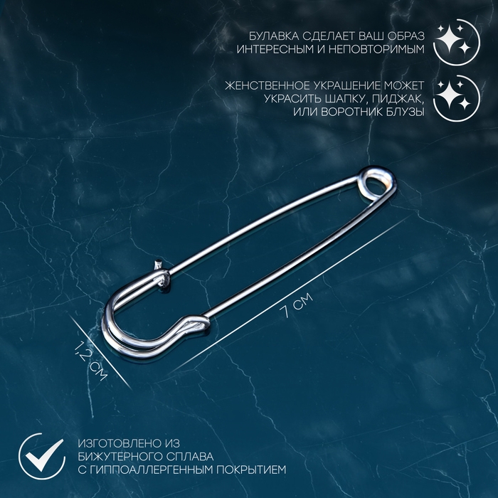 Булавка «Простая» 7 см, цвет серебро