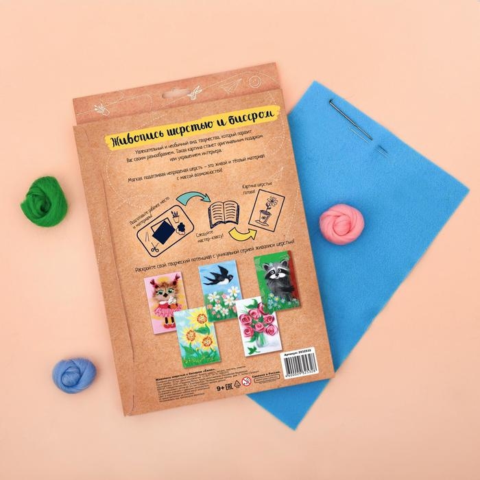 В этом наборе собрано всё самое необходимое для создания своими руками рисунка в технике сухого валяния на фетровой основе.