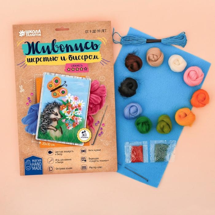 Валяние из шерсти. Картина «Ёжик», А4, набор для творчества