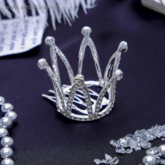 Диадема для волос "Сирена" корона (на гребне) 3,5х3,2 см, серебро