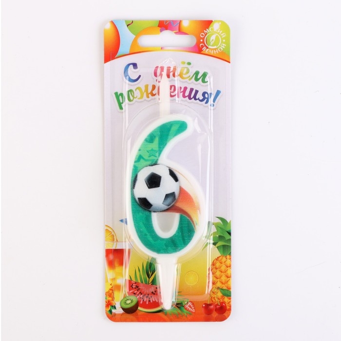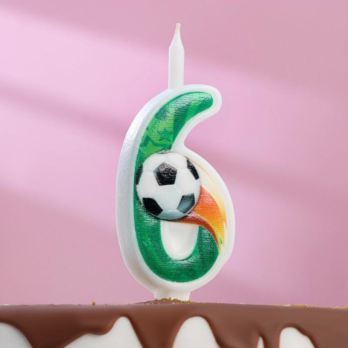 Свеча для торта "Футбольная", 10,2 см, зелёная цифра "6"