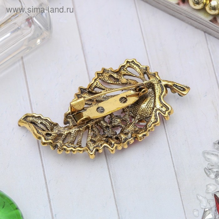 Брошь «Лист осенний» ажурный, цветная в чернёном золоте