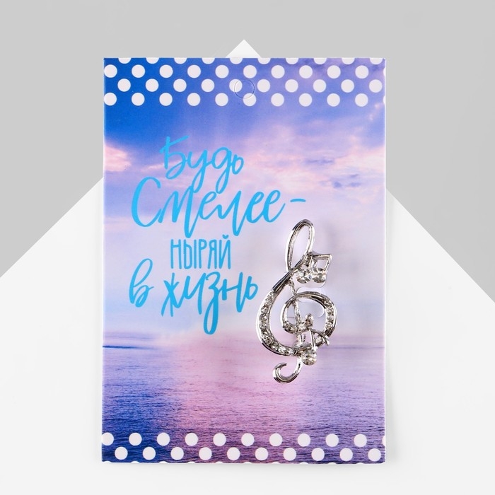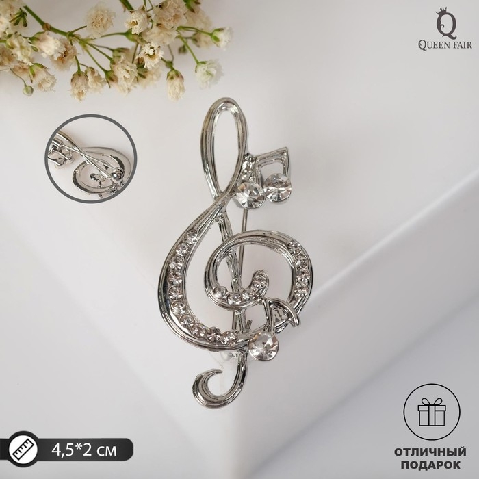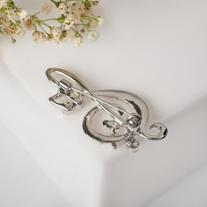 Брошь «Скрипичный ключ» и нотки, цвет белый в серебре