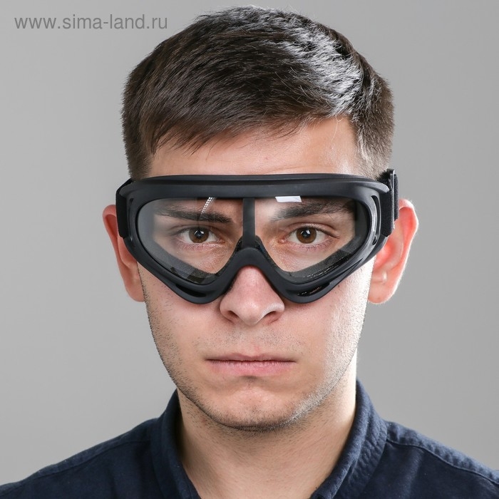 Очки для езды на мототехнике, стекло прозрачное, цвет черный