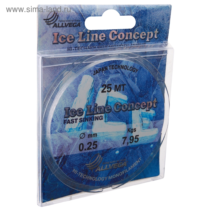Леска монофильная ALLVEGA Ice Line Concept, диаметр 0.25 мм, тест 7.95 кг, 25 м, прозрачная