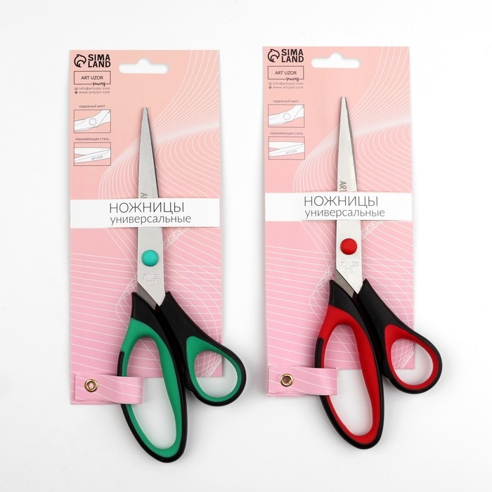 Универсальные ножницы подходят для работы с бумагой, картоном, полиэтиленом. Ножницы удобно лежат в руке, а их острые лезвия обеспечивают идеально ровный срез.