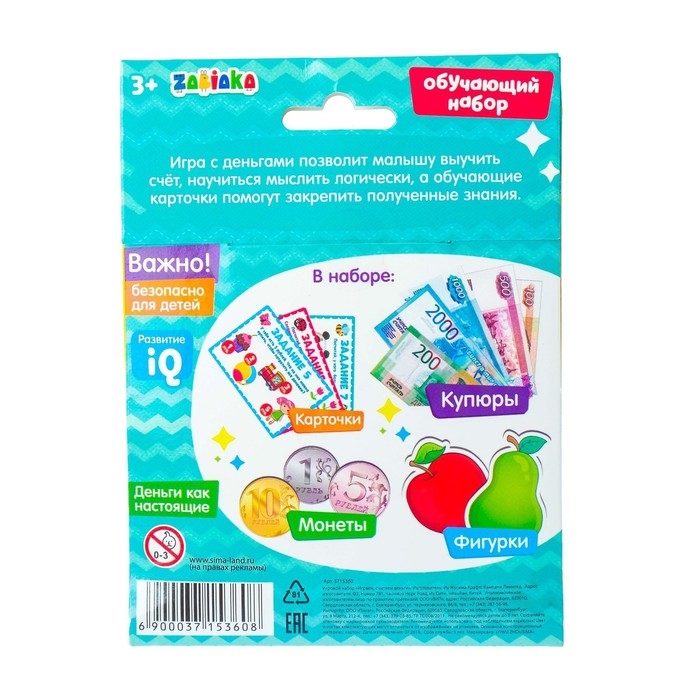 Обучающий набор с деньгами поможет ребёнку научиться считать, а 10 заданий закрепят полученные знания.