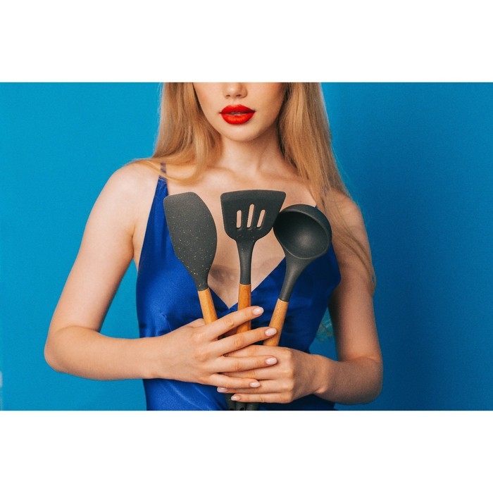 - Выполнен из экологичных материалов. Рукоятка разливной ложки выполнена из натурального дерева. Рабочая часть предмета - из термостойкого пищевого силикона.