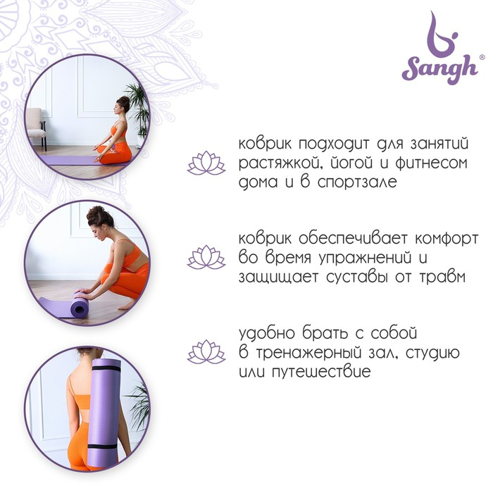 Коврик для йоги Sangh, 183×61×1 см, цвет фиолетовый