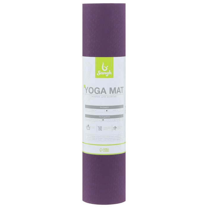 Коврик для йоги Sangh, 183×61×0,6 см, цвет фиолетовый