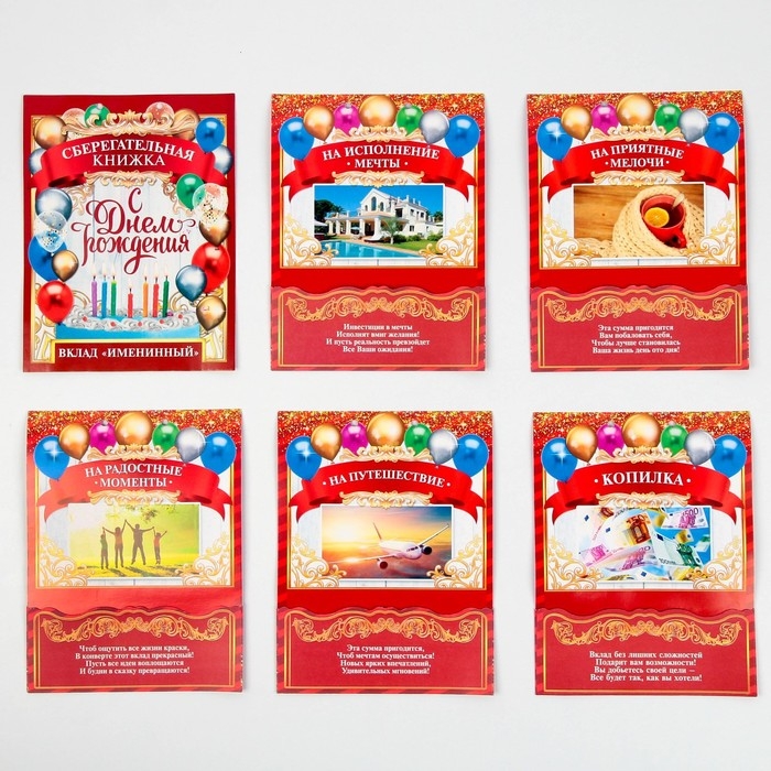 Конверт для денег, открытка на День Рождения «Вклад Юбилейный», 6 листов, 16,5 х 21,5 см.