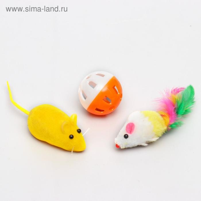 Набор игрушек для кошек: 2 мыши (5 и 6 см) и шарик 3,8 см, микс цветов