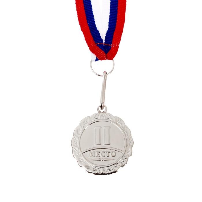 Медаль призовая 014, d= 7 см. 2 место, триколор. Цвет серебро. С лентой