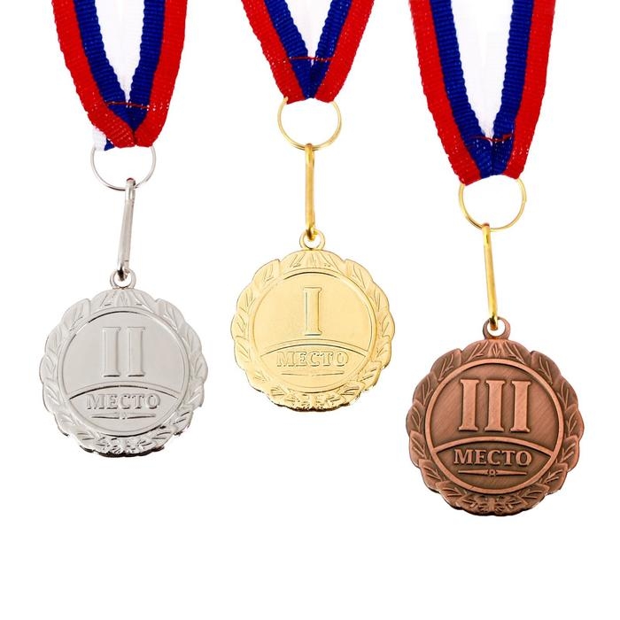 Медаль призовая 013, d= 5 см. 1 место, триколор. Цвет золото. С лентой