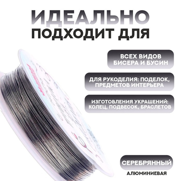 Проволока для бисероплетения D= 0,3 мм, длина 30 м, цвет серебряный