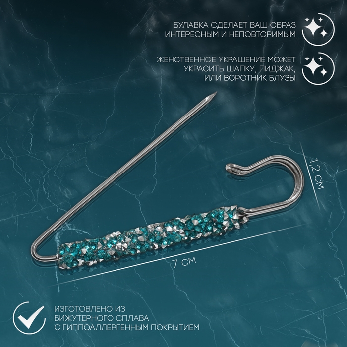 Данная булавка – настоящая находка для модниц, предпочитающих нетривиальные аксессуары. Брошь-булавка станет не только оригинальным дополнением вашего наряда, но и позволит без труда приколоть при необходимости палантин или шейный платок. Используйте её в качестве украшения шляпки, рубашки или галстука. Булавка «Вечеринка» стразы, 7 см, цвет голубой в серебре внесёт особую нотку изящности в ваш образ.