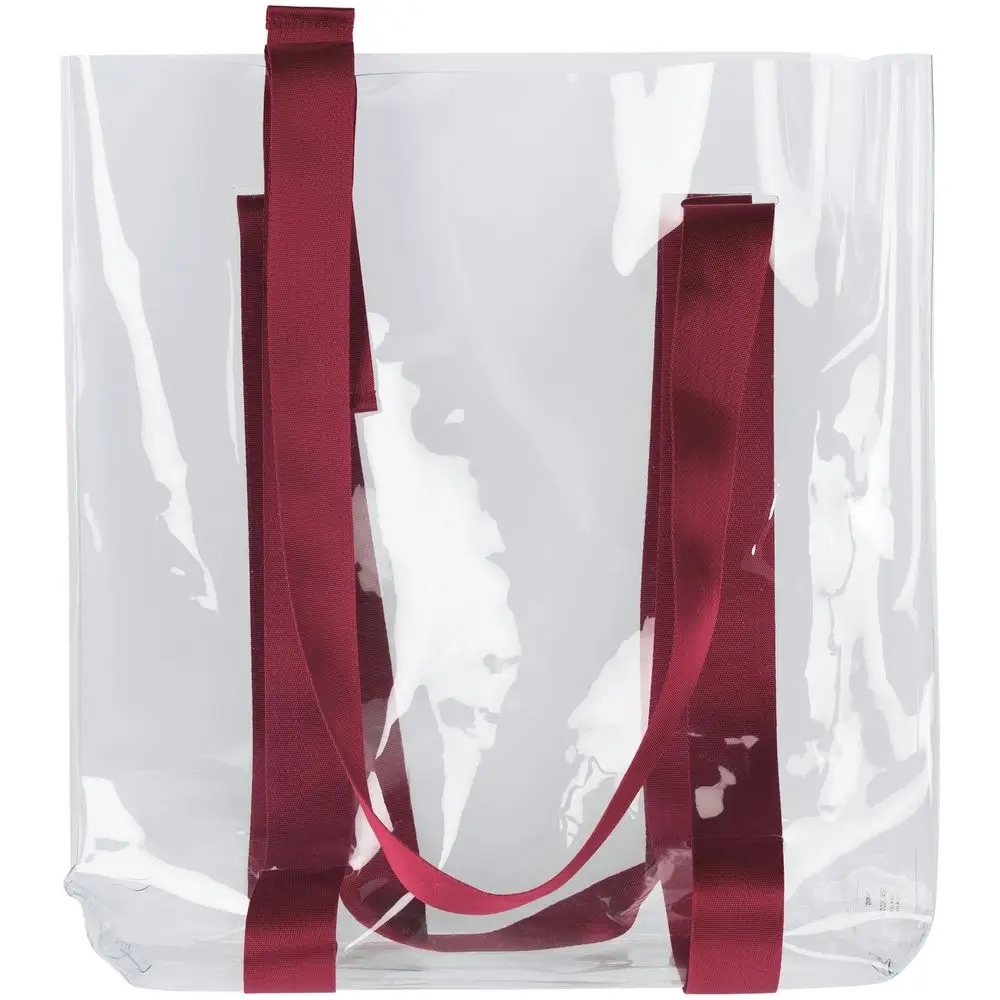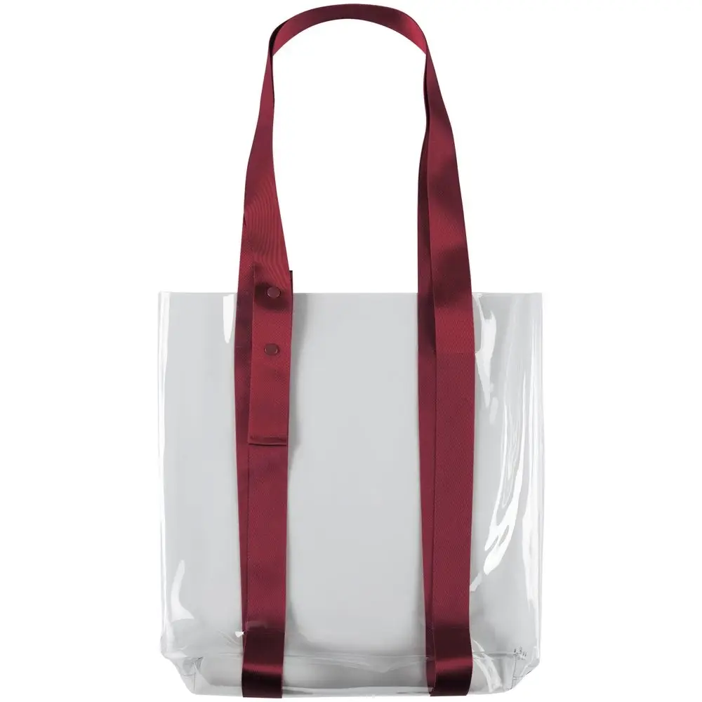 Прозрачные сумки никогда не выйдут из моды. А цветные ручки легко впишутся в брендбук и точно передадут настроение, которое хотелось бы транслировать.