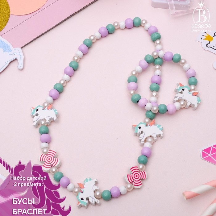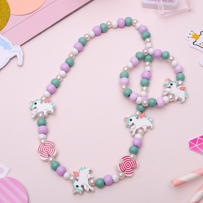 Набор детский «Выбражулька» 2 предмета: бусы, браслет, единорог, цветной