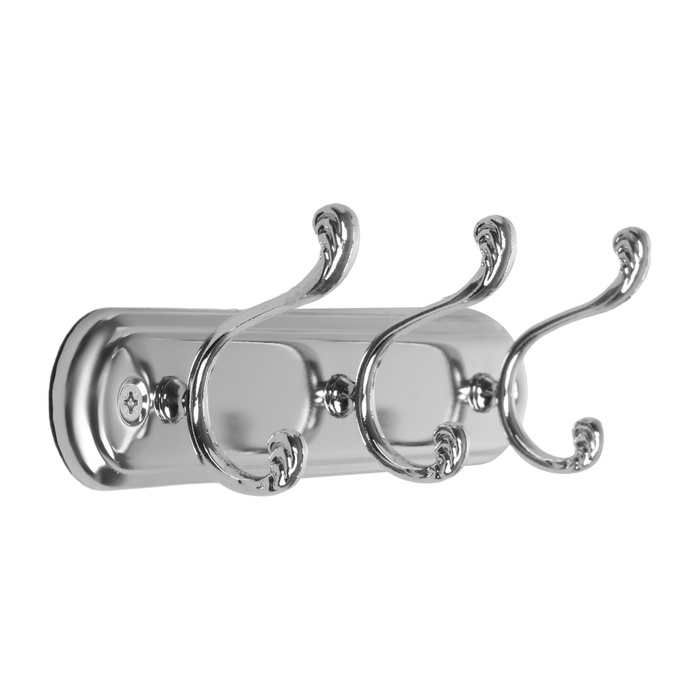 Вешалка ТУНДРА TVT003, металлическая, трёхрожковая, цвет хром