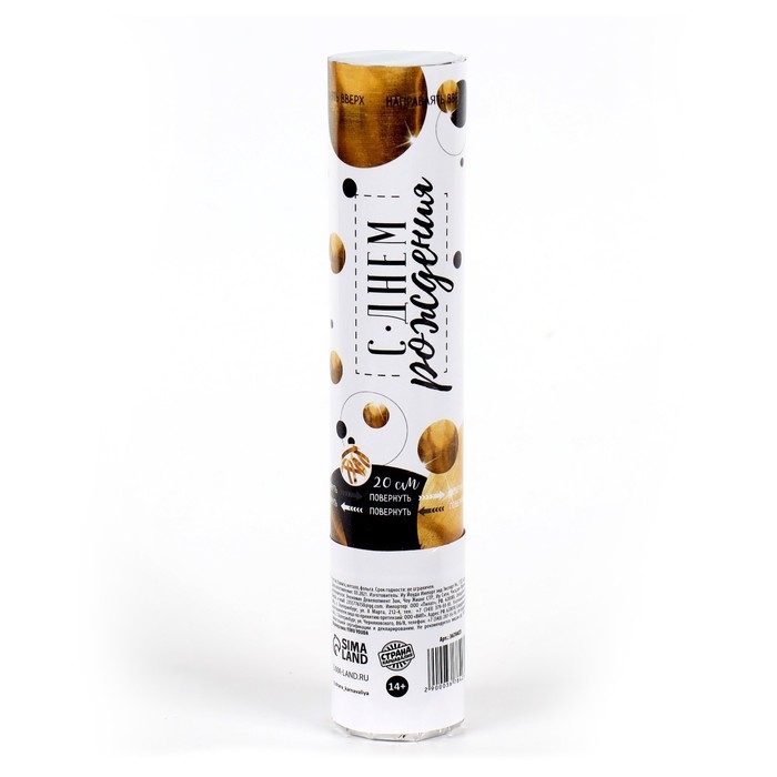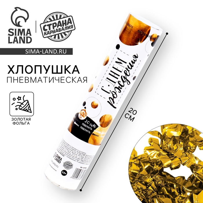 Хлопушка пневматическая «С днём рождения», цвет золотой, 20 см