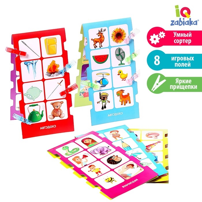 IQ-игра с прищепками «Сходства и различия», противоположности, по методике Монтессори