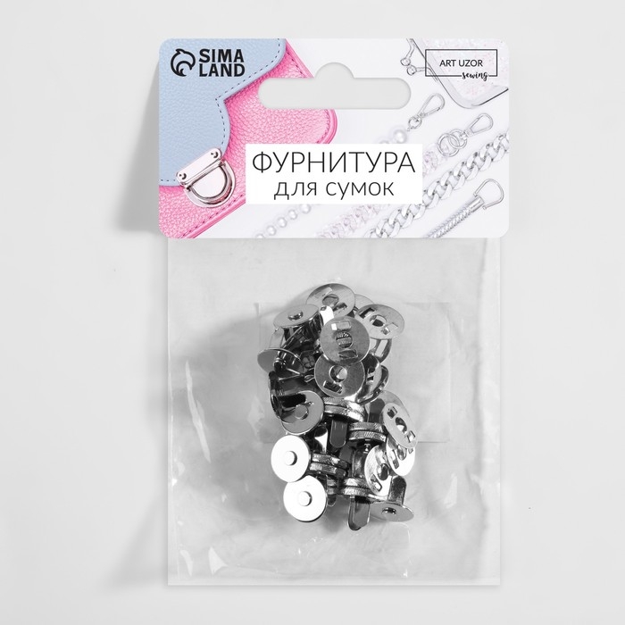 Кнопки магнитные, d = 18 мм, 10 шт, цвет серебряный