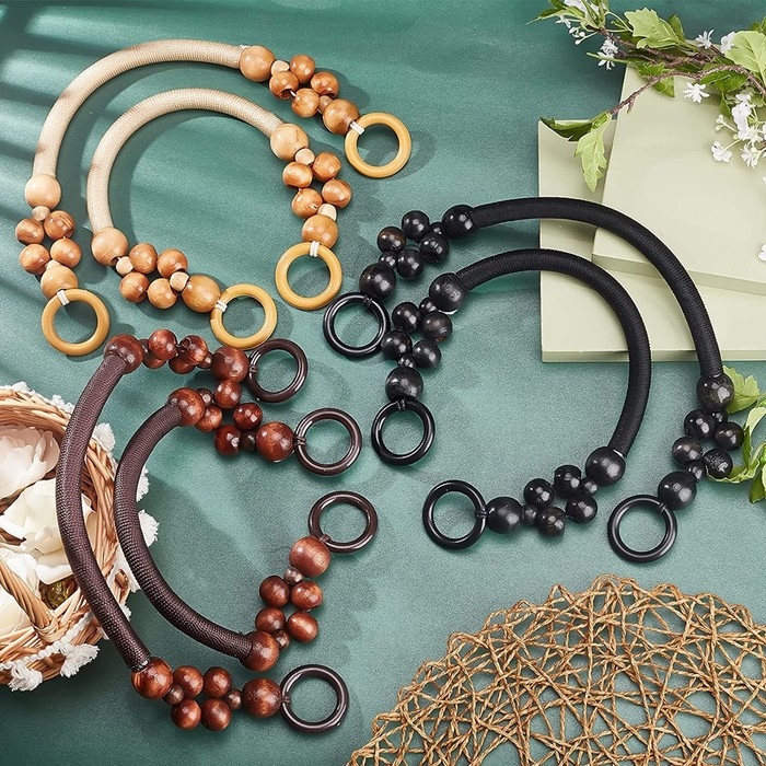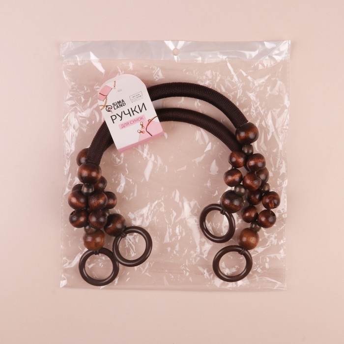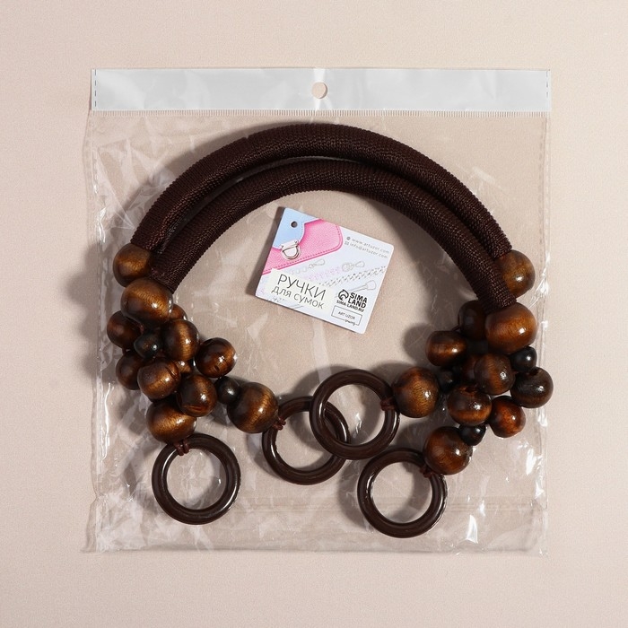 Ручки для сумки, 2 шт, вощёный шнур/дерево, 46,5 × 4 см, цвет коричневый