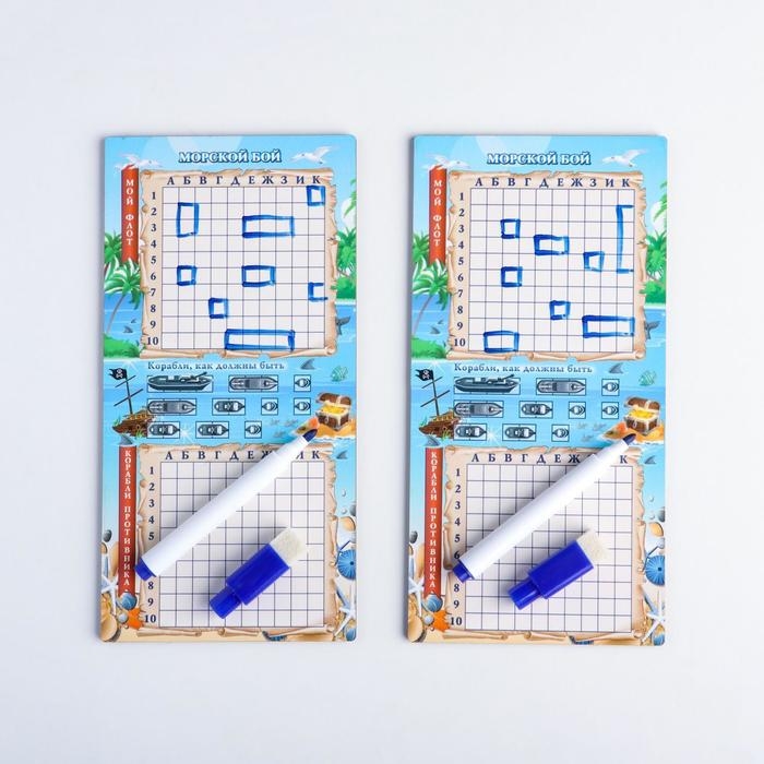 Настольная игра морской бой "Тихие воды", 2 стираемых маркера, 2 игровых поля