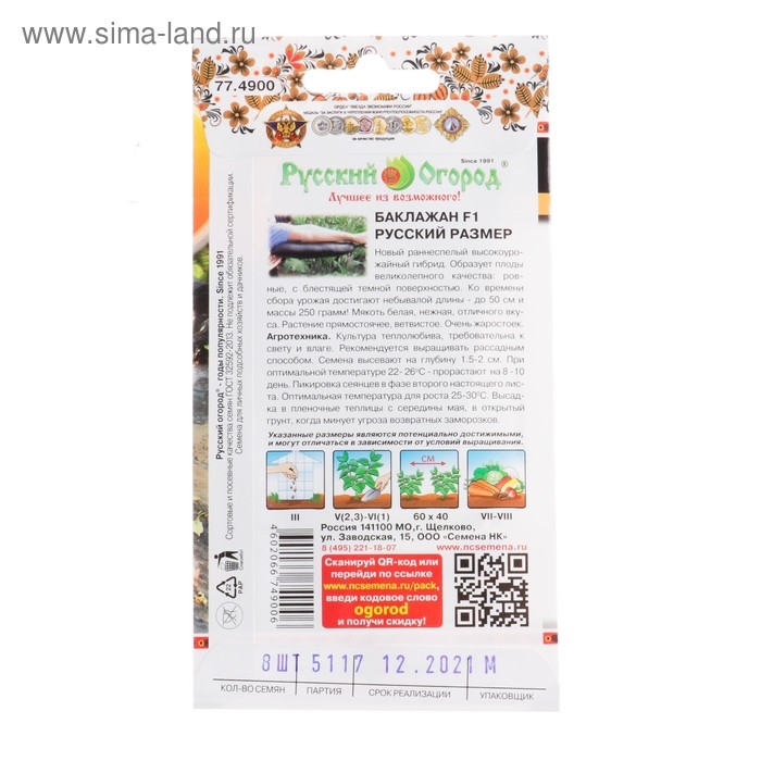 Семена Баклажан серия "Русский Размер", XXL, F1, 8 шт.
