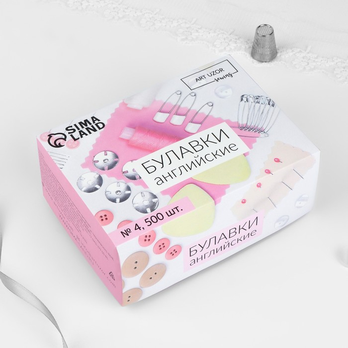 Булавки английские, 50 мм, 500 шт, цвет серебряный