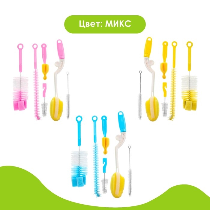 Набор ёршиков по уходу за детскими бутылочками, 6 предметов, цвет МИКС