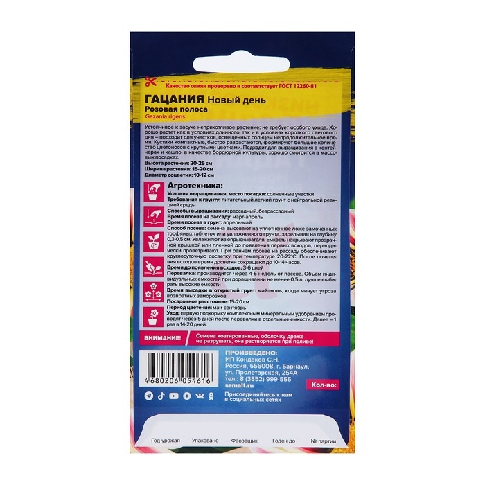 Восхитительный однолетник! Гацании серии New Day компактны, отличаются простотой выращивания, отлично подходят для загущенных посадок, держат цветок открытым до позднего вечера. Кустик крепкий, ветвящийся, шириной 15-20 см. Очень крупные соцветия с темным кольцом вокруг центра и необычной полосатой бело-розовой окраской лепестков не оставят равнодушными даже самых искушенных цветоводов. Используется для оформления рабаток, бордюров, каменистых горок, отлично смотрится в вазонах, балконных и оконных ящиках. Растение жаро- и засухоустойчивое, предпочитает открытые солнечные участки с хорошо дренированной легкой почвой. Избытка влаги не переносит.