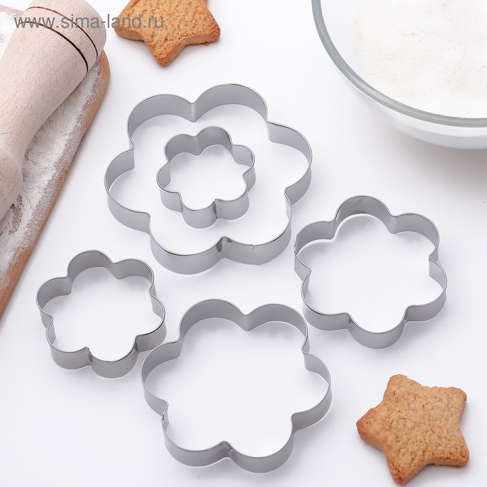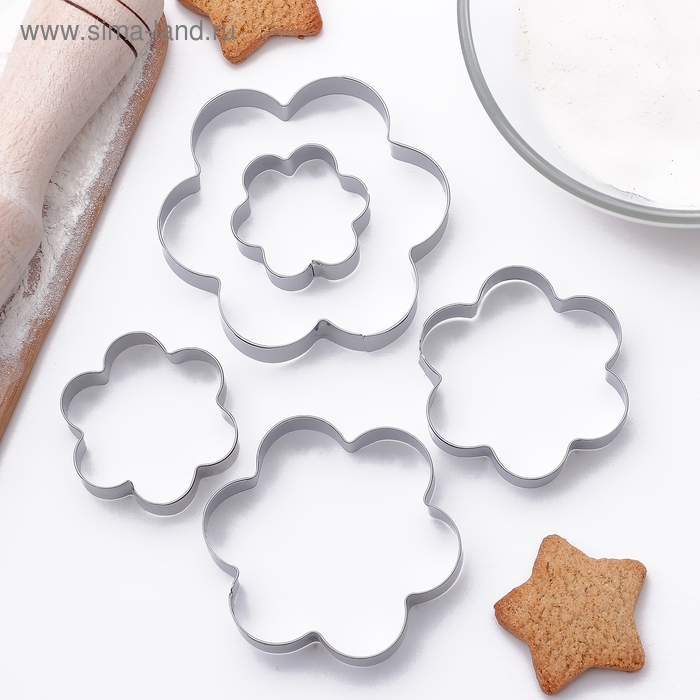 Набор форм для печенья Доляна «Ромашка», 5 шт, 7,8×7,8 см, цвет серебристый