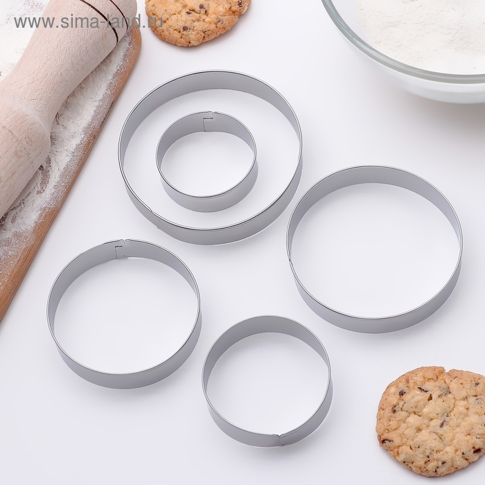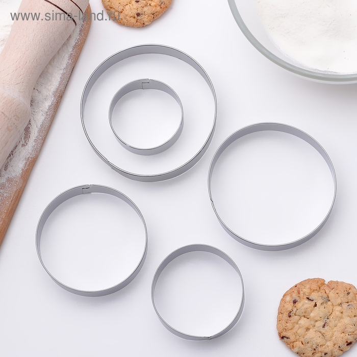 Набор форм для печенья Доляна «Круг», 5 шт: 3,1 см, 3,6 см, 4 см, 4,6 см, 5 см, цвет серебристый
