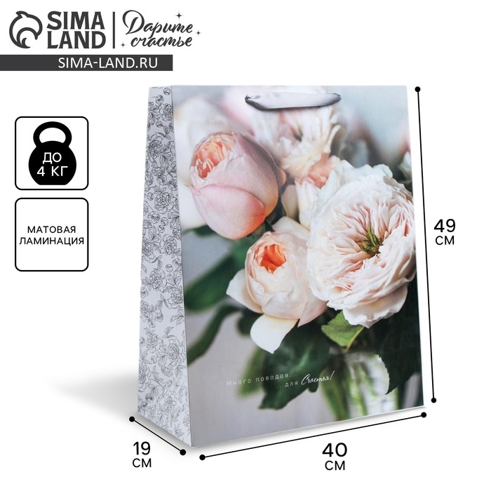Пакет подарочный ламинированный, упаковка, «Счастья», XL 40 х 49 х 19 см
