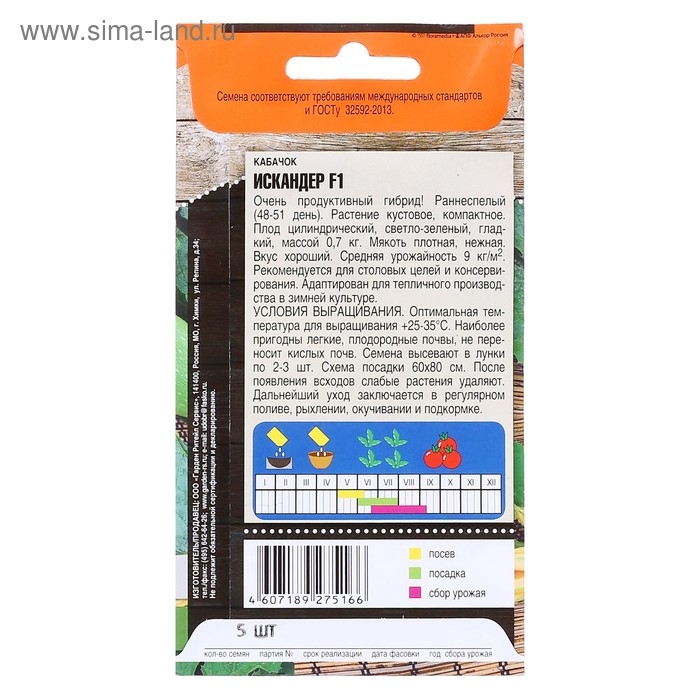 Семена Кабачок "Искандер", F1,набор 5 шт