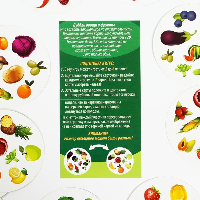 Настольная игра на реакцию и внимание «Дуббль. Овощи и фрукты», 20 карт, 5+